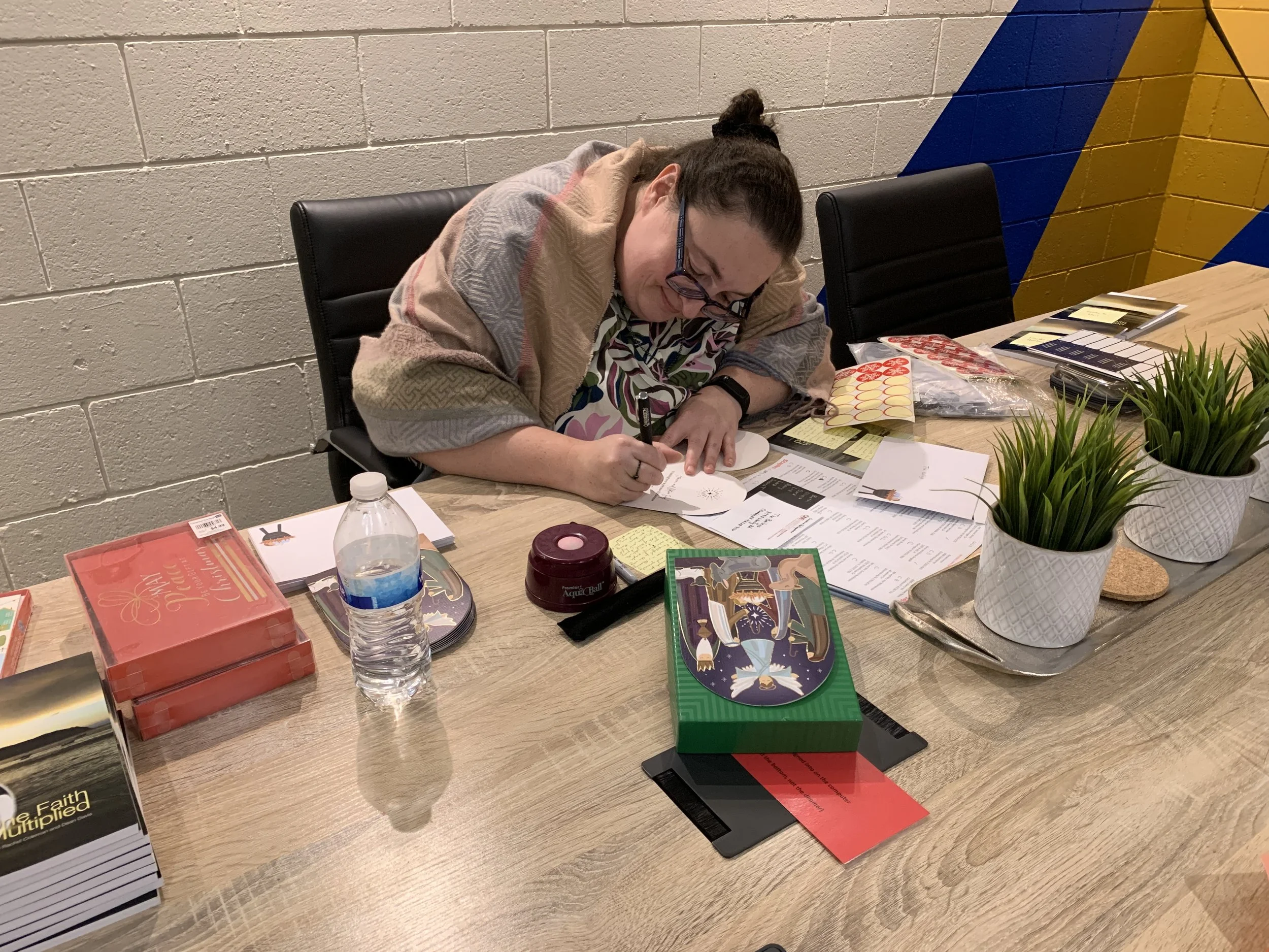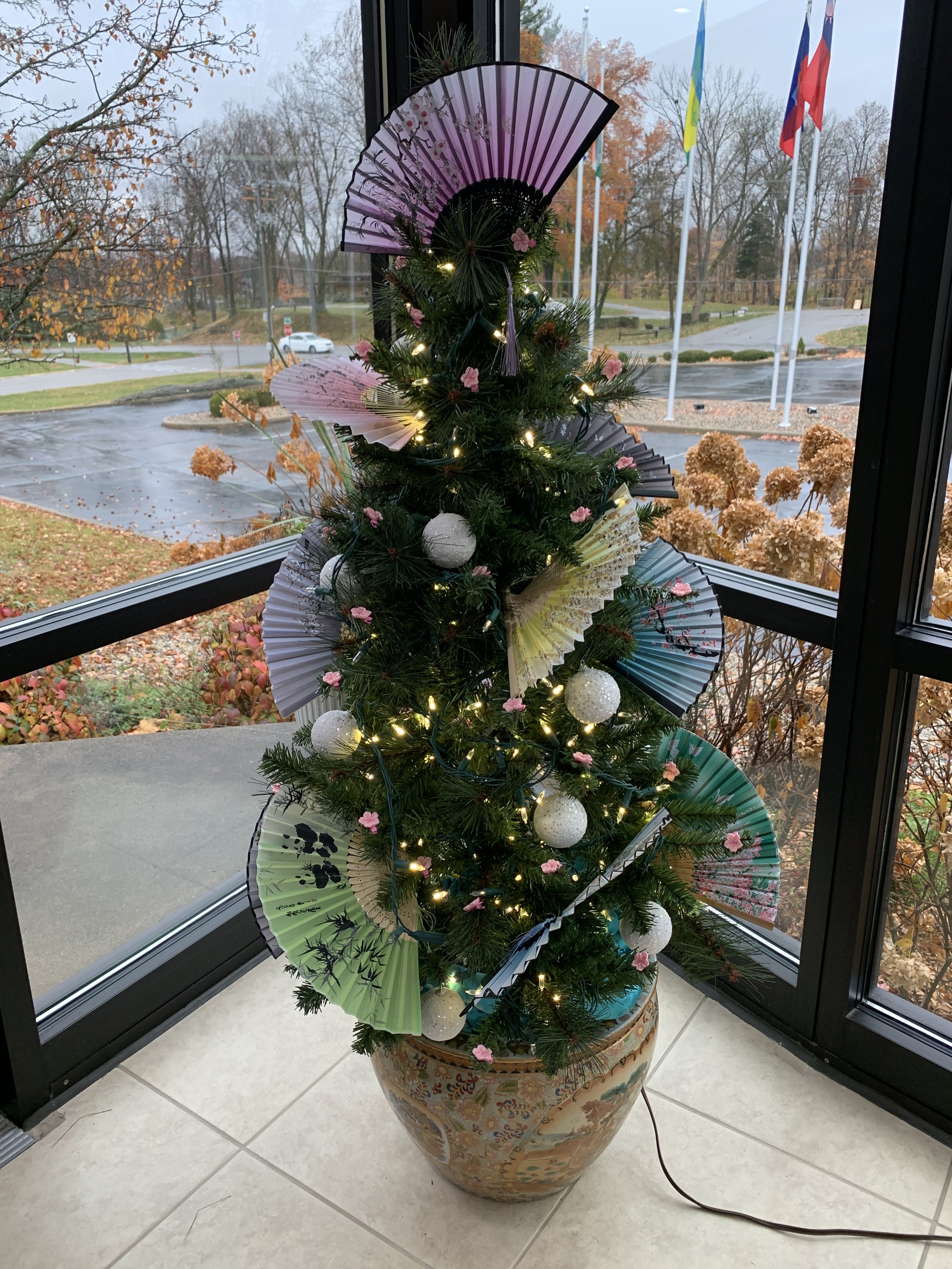 And Christmas has indeed arrived in Greenwood. We decorated our office space, and the lobby halls have been decked. I LOVE the fan tree this year!