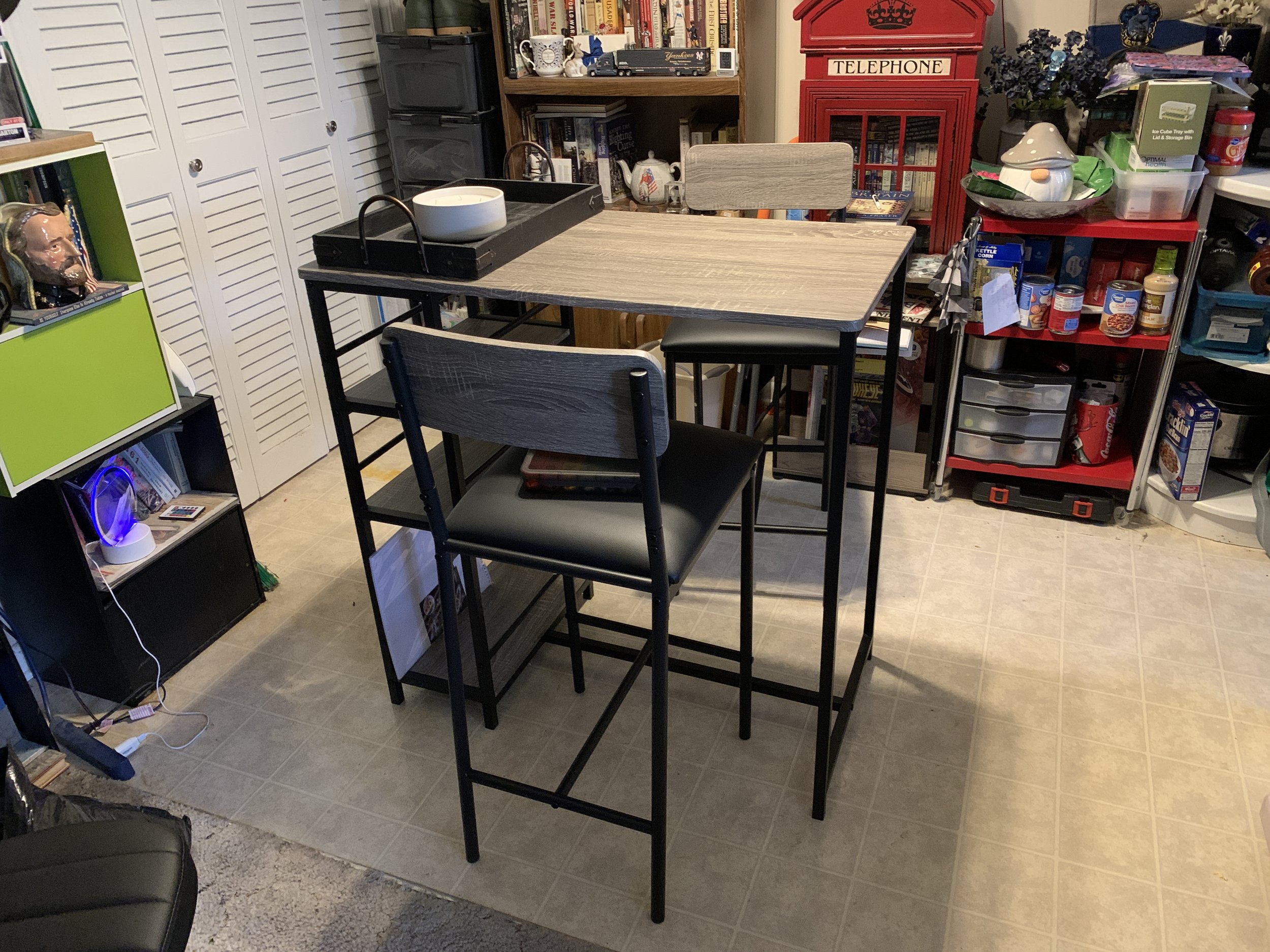 I have been slowly working on reorganizing my apartment. Part of that is replacing my old kitchen table. I bought it at a garage sale before I moved to Greenwood 15 years ago, and it served me well, but it was a bit large for the space. (You know, since I keep adding bookshelves.) And since I don’t sleep well, I used a few of my late evenings to put the new table together. Fortunately, it was all hex key construction, so I don’t think I bothered my neighbors too much.